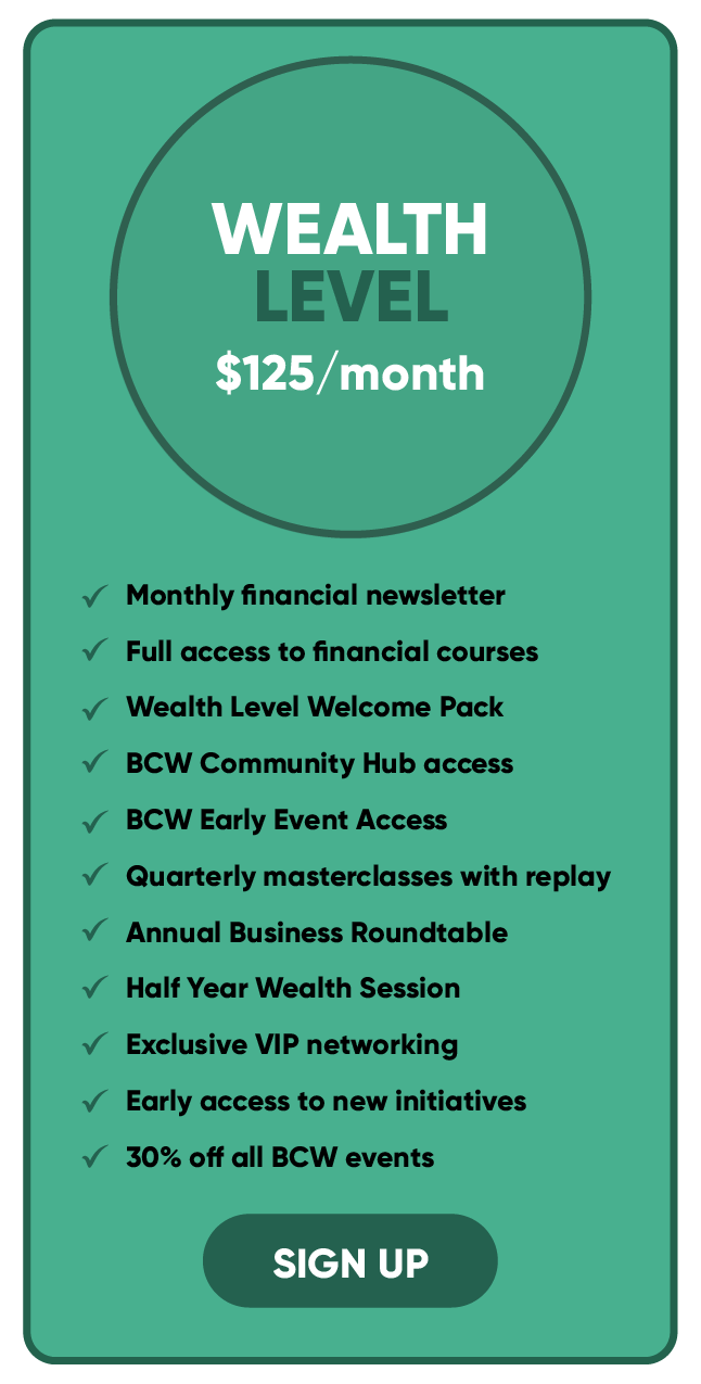 - Wealth: Our premium tier gives full course access, exclusive VIP networking, events, and special initiatives.